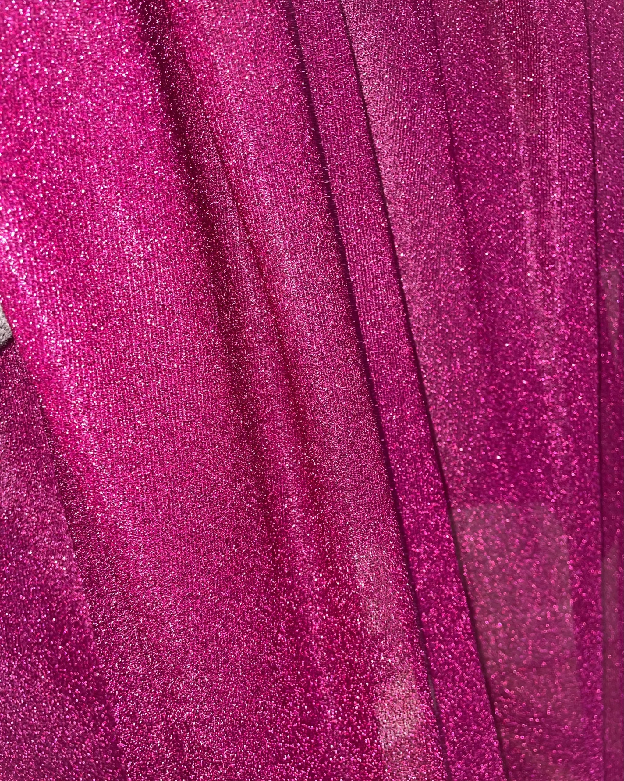 Double layered Lycra fabric overlaid with gathered glitter Mesh fabric.