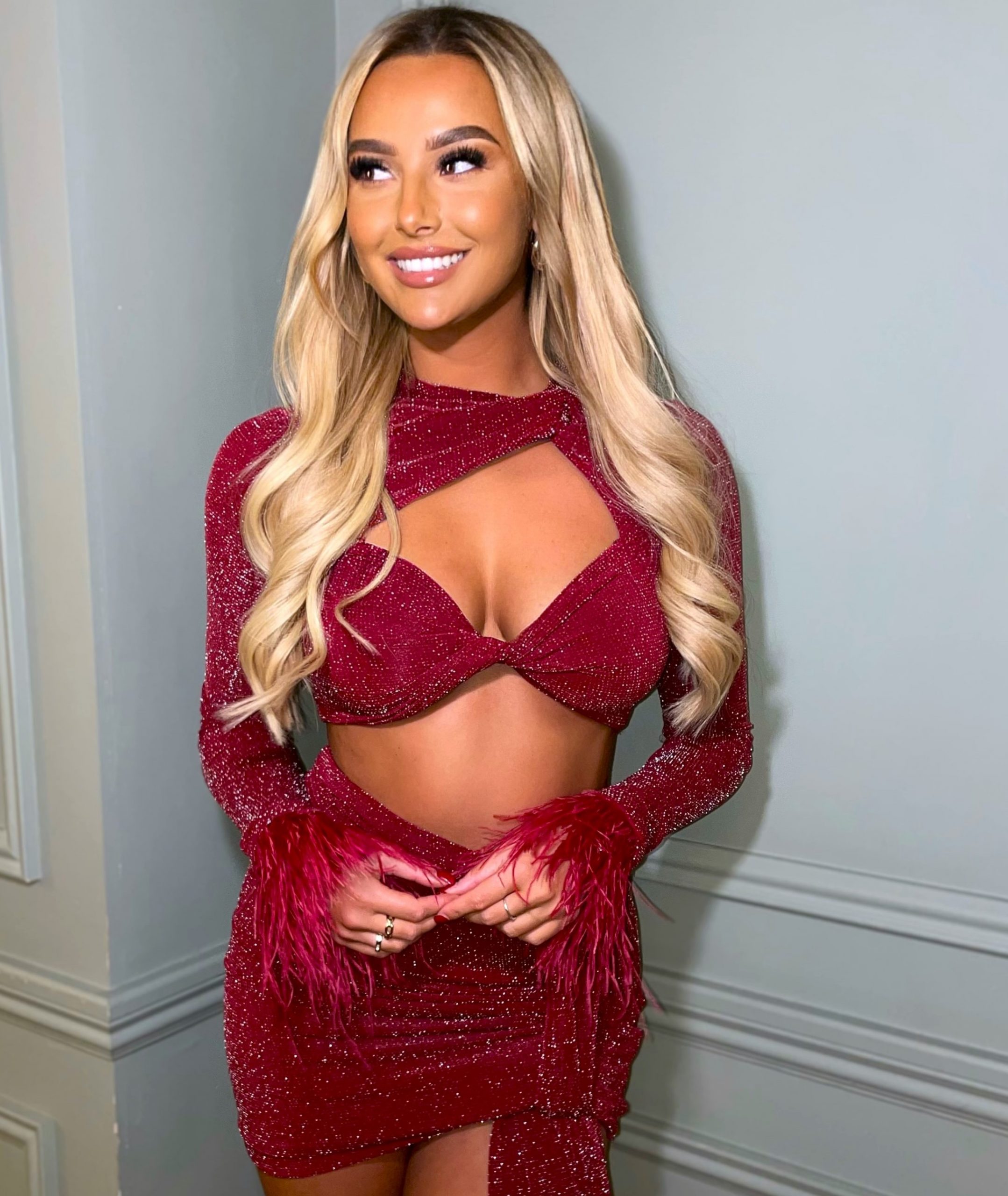 Glitter Lurex Twist Neck & Twist Bust Top with Ostrich feather Cuffs.