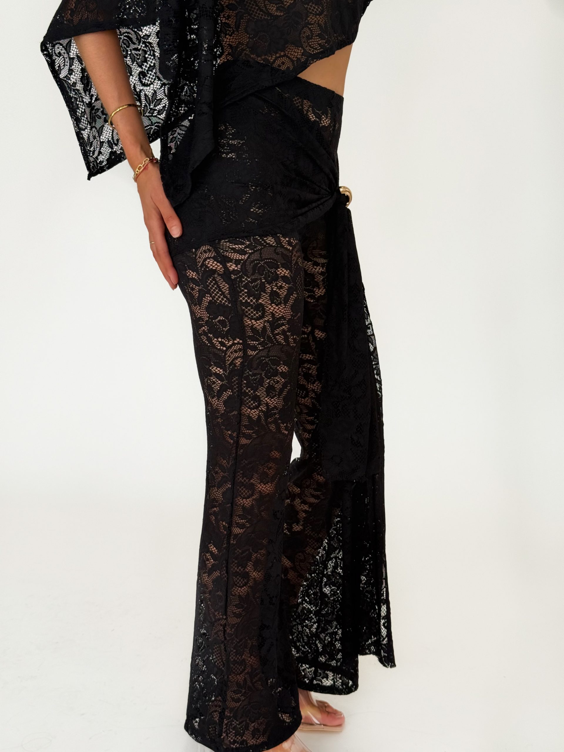 Made with our premium stretch lace, featuring luxe gold hardware and tie drape detailing.
