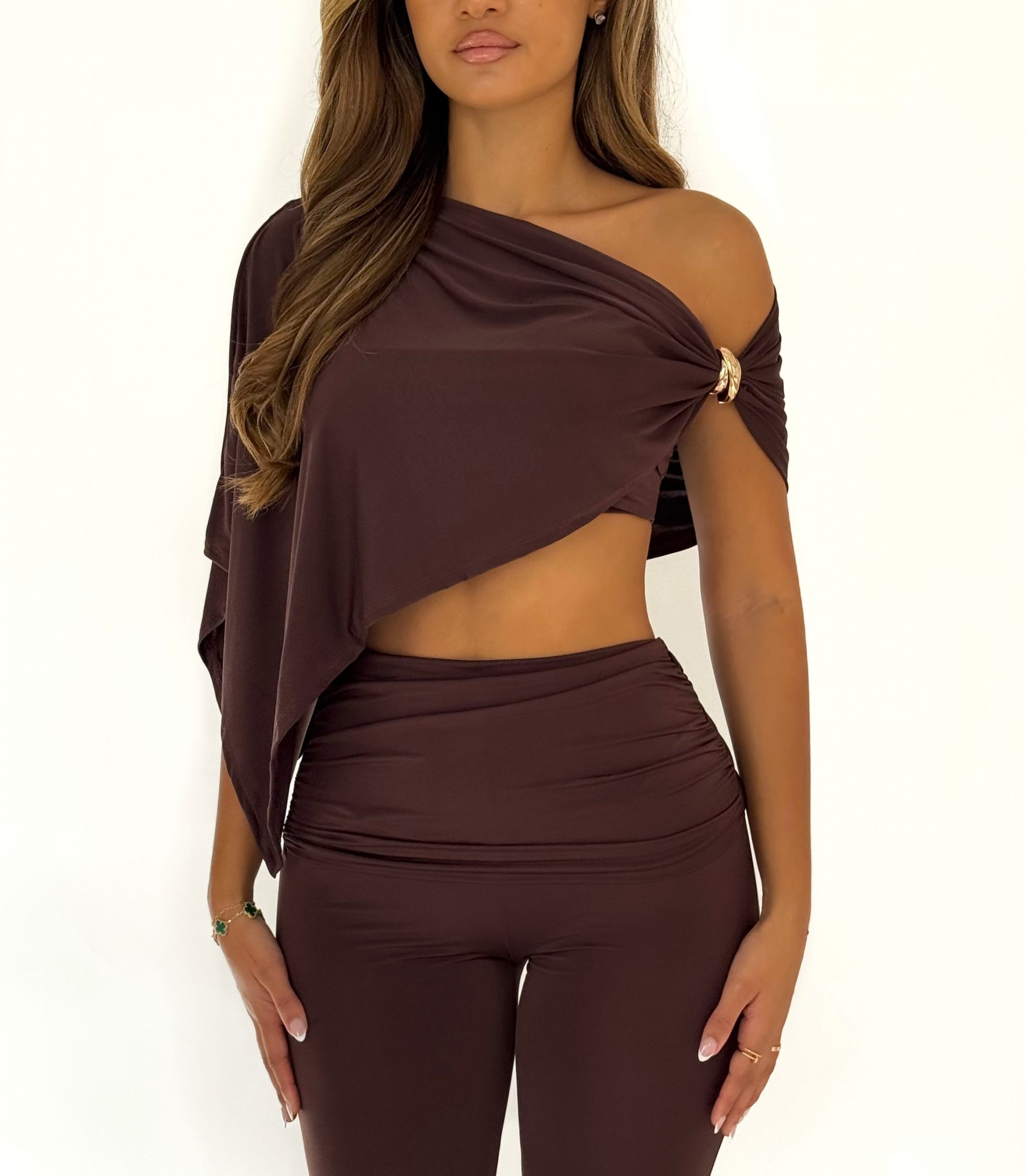 A must-have for Autumn & Winter! Our Slinky chocolate Poncho with gold detail is so easy to style with neutral and gold accessories.