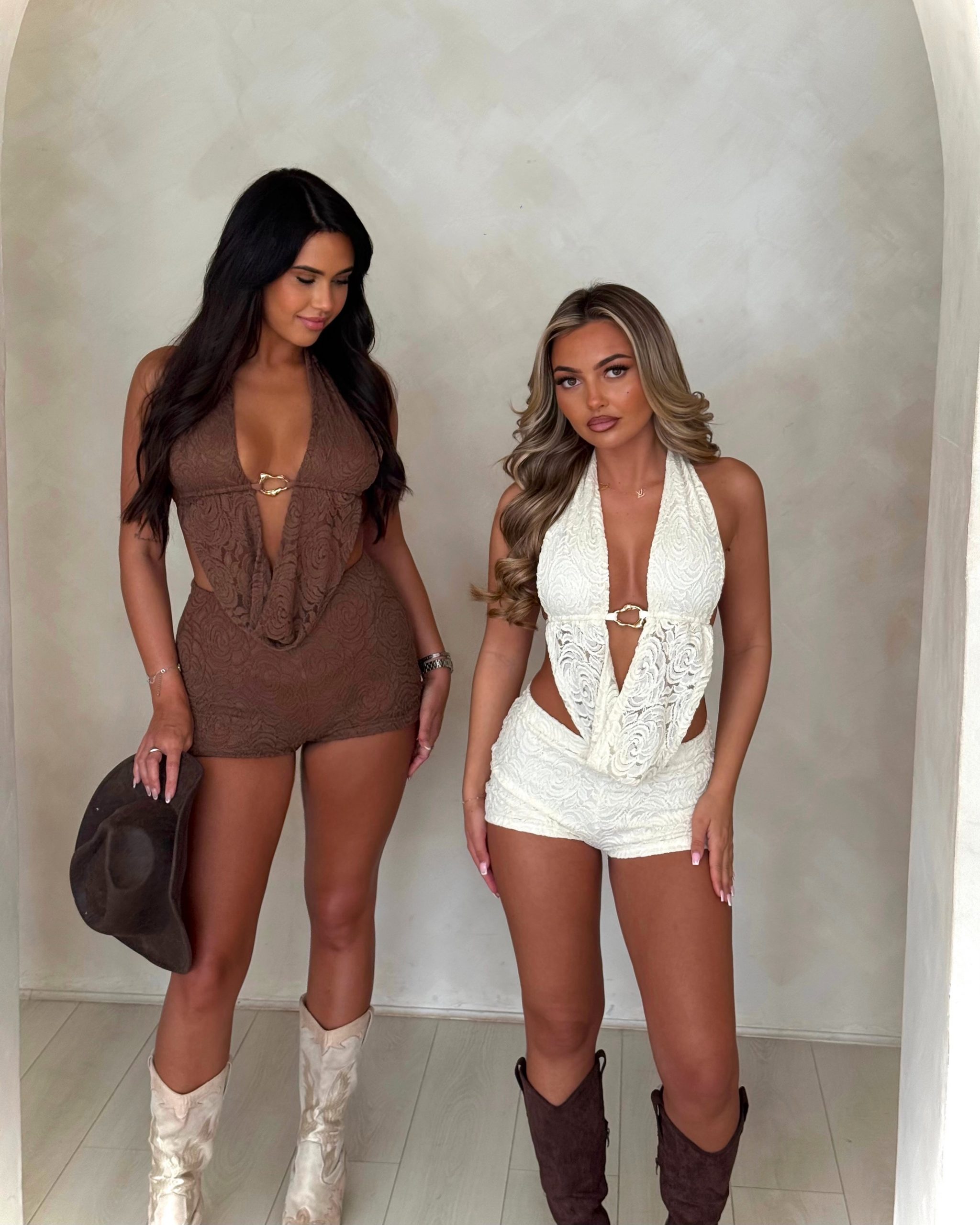 Made with the most amazing limited edition, textured lace stretch fabric. Both the Top and Shorts are lined.